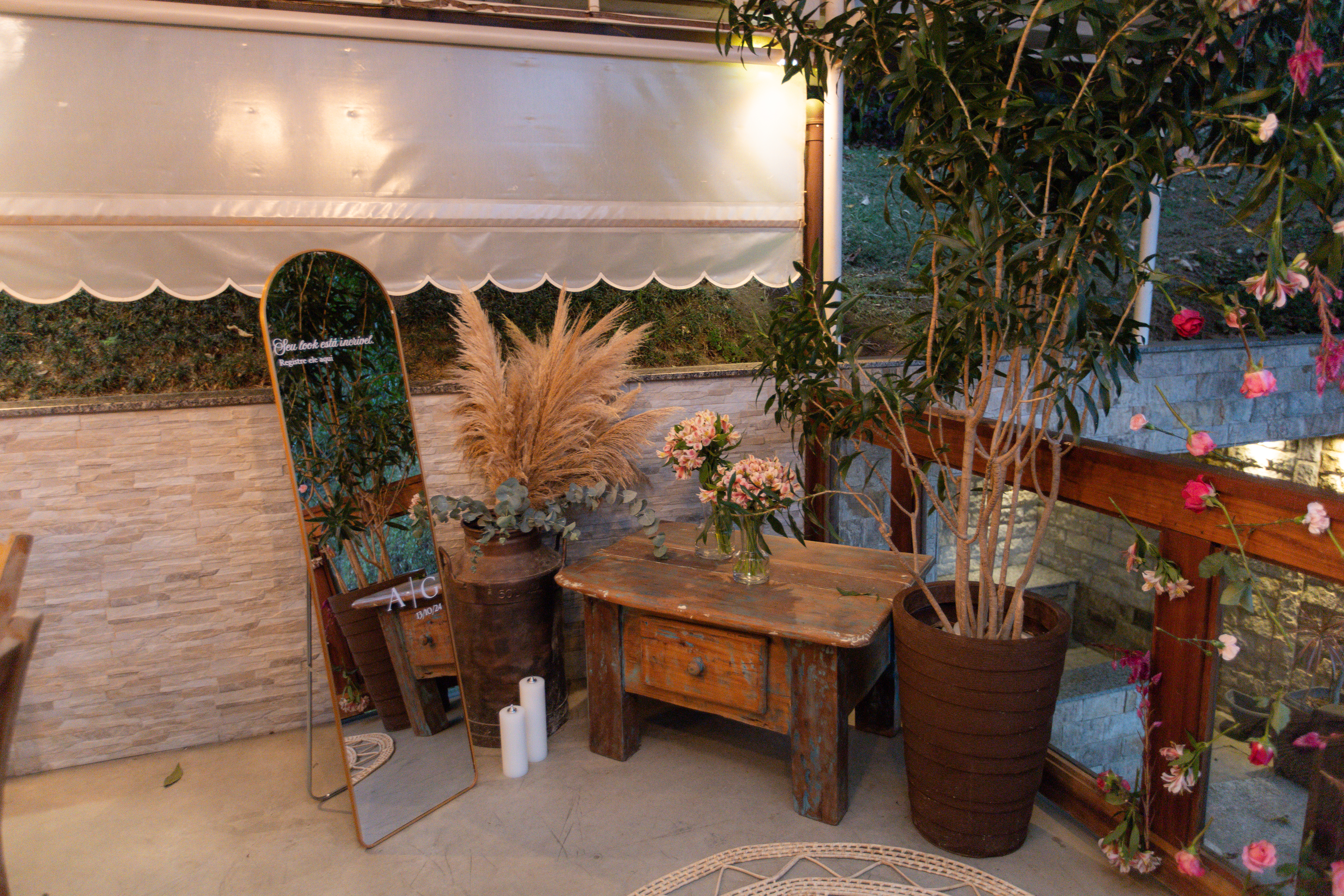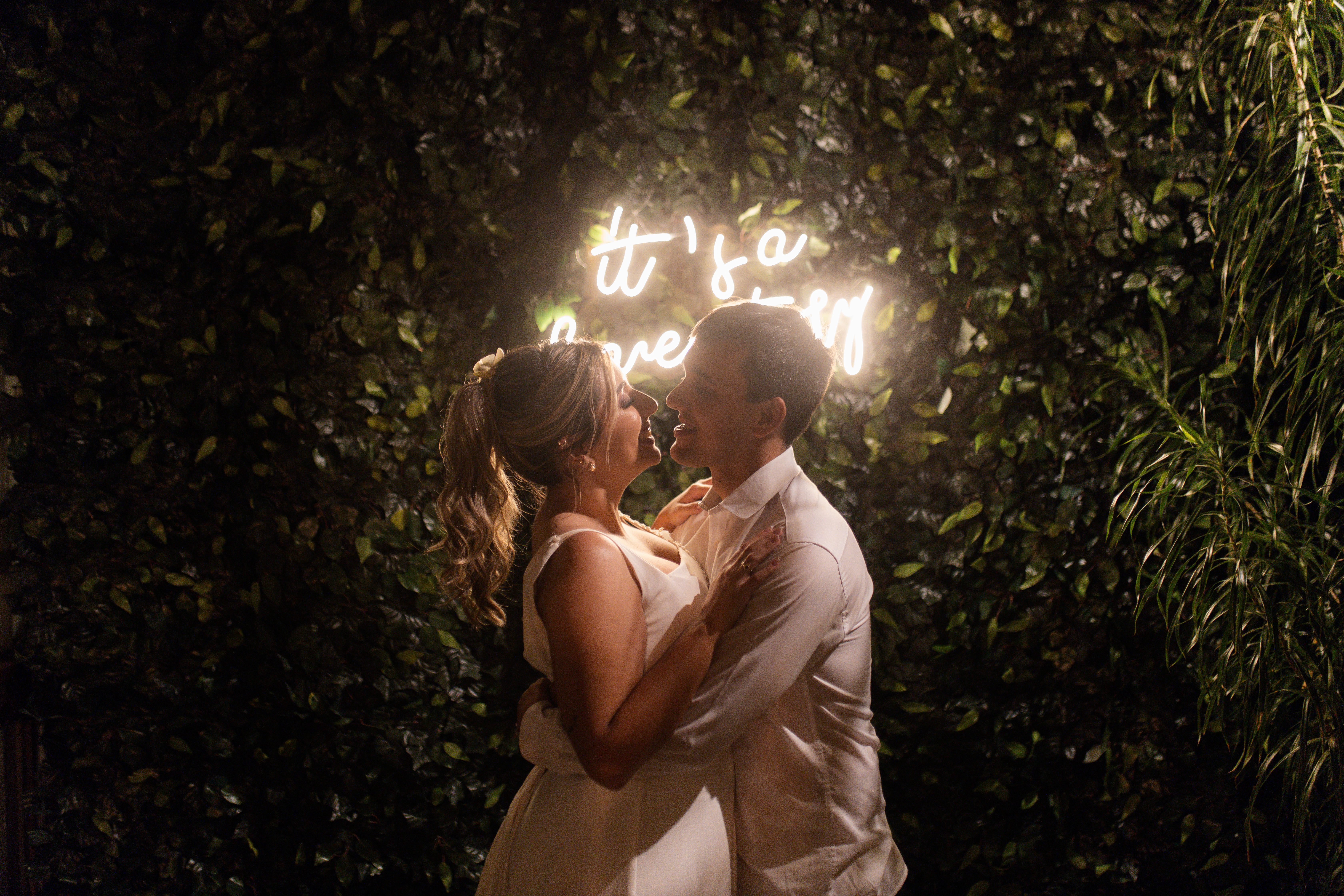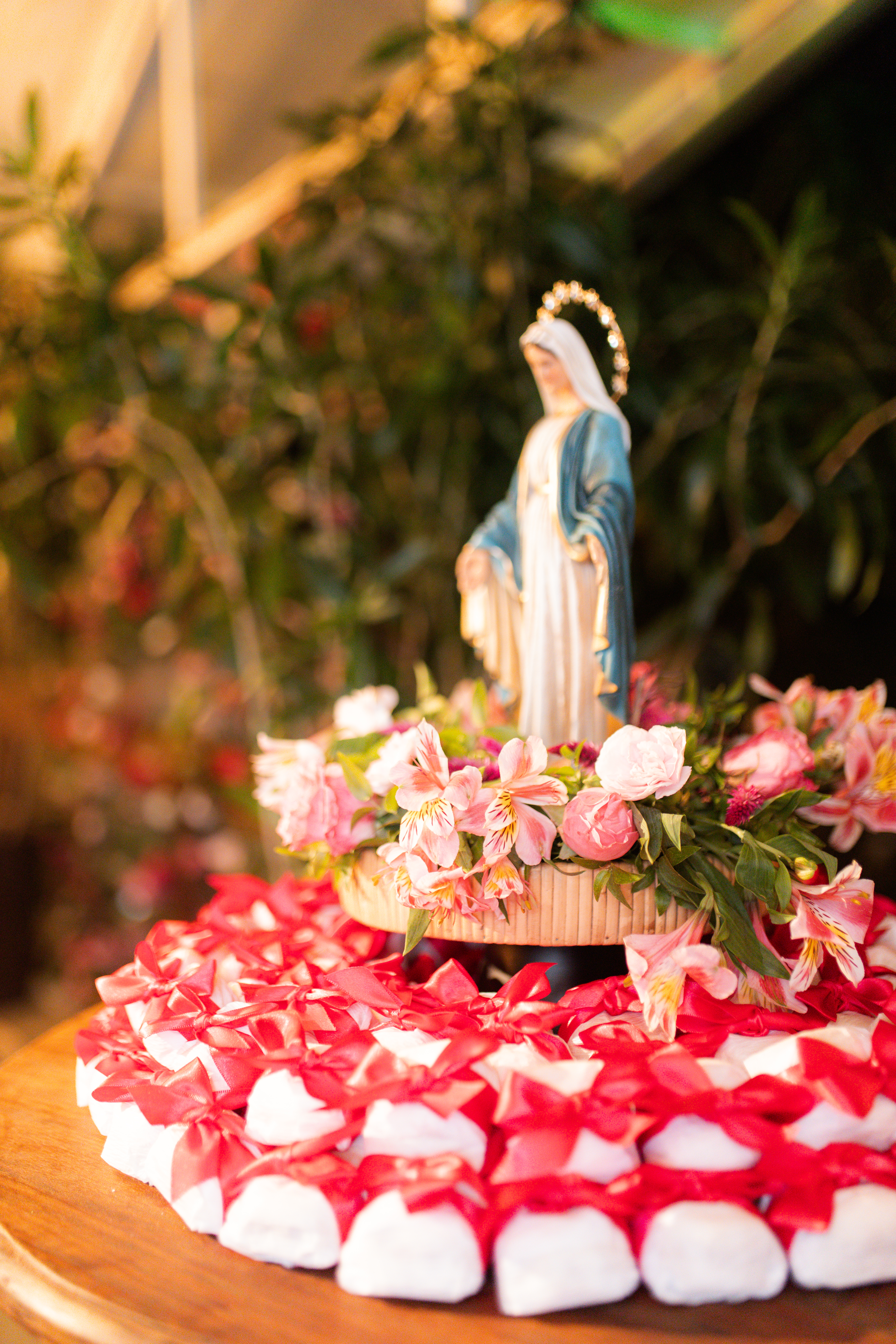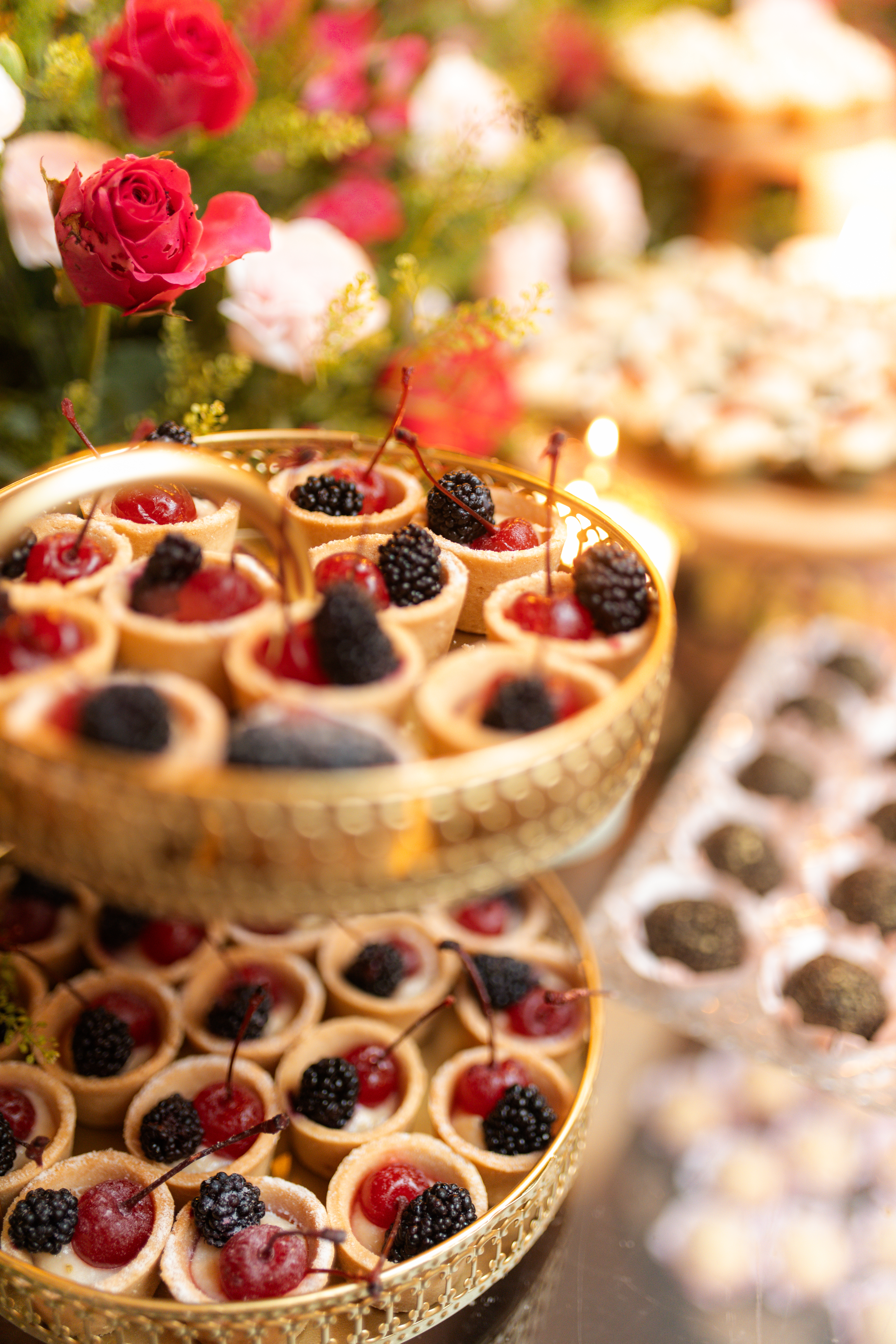 Para essa decoração os noivos escolheram tons de rosa para deixar o ambiente beeem romântico. A composição foi feita por diferentes flores em diferentes rosas, com doces finos, forminhas delicadas, uma arranjo inteiro na mesa formando um jardim e lâmpadas retrô para darem um charme no espaço.