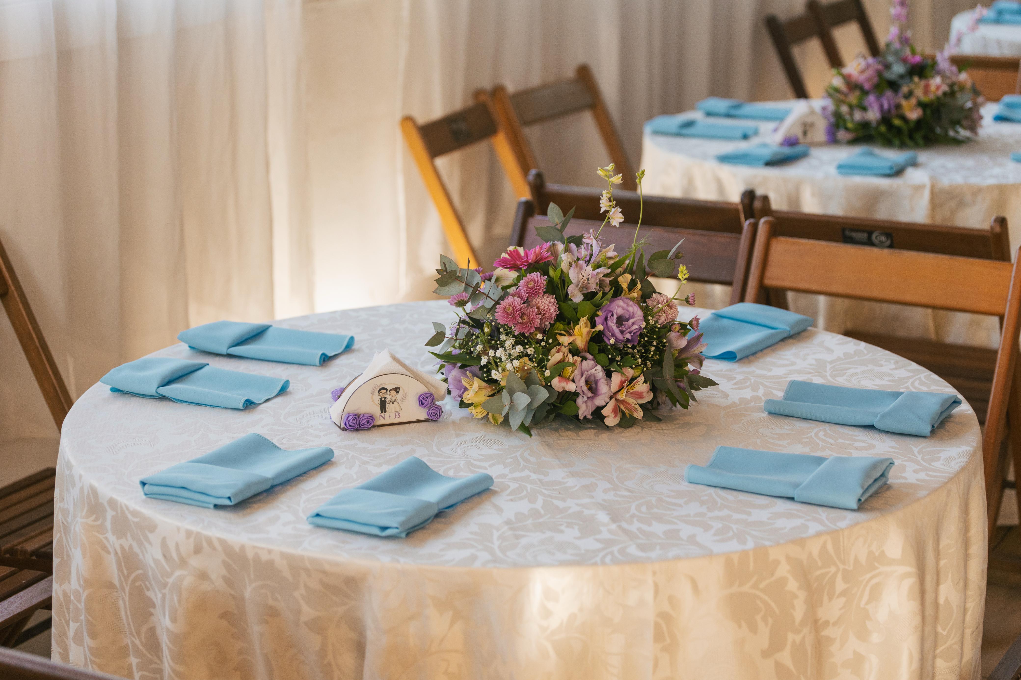 Essa celebração foi pensada para transmitir a essência do amor de forma delicada e encantadora. Desde o primeiro olhar, a decoração em tons pastéis convidava os convidados a mergulharem em um ambiente de suavidade e romantismo. Rosas claras, lilases, azuis suaves e toques de verde se uniram em arranjos florais que pareciam ter saído de um jardim dos sonhos.