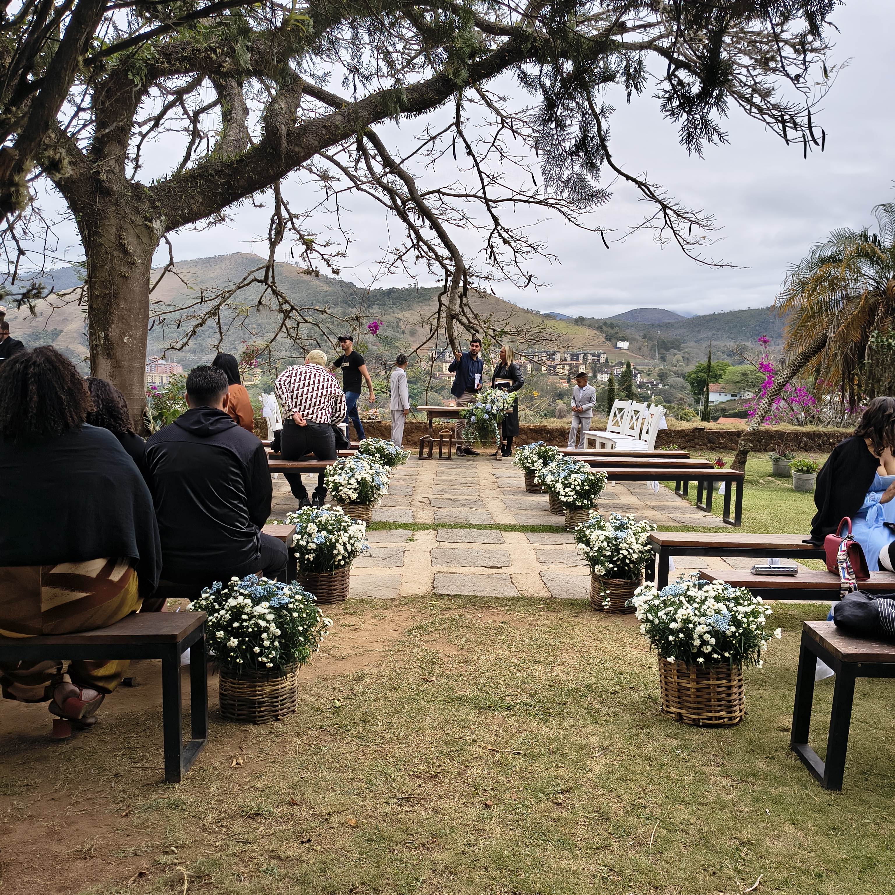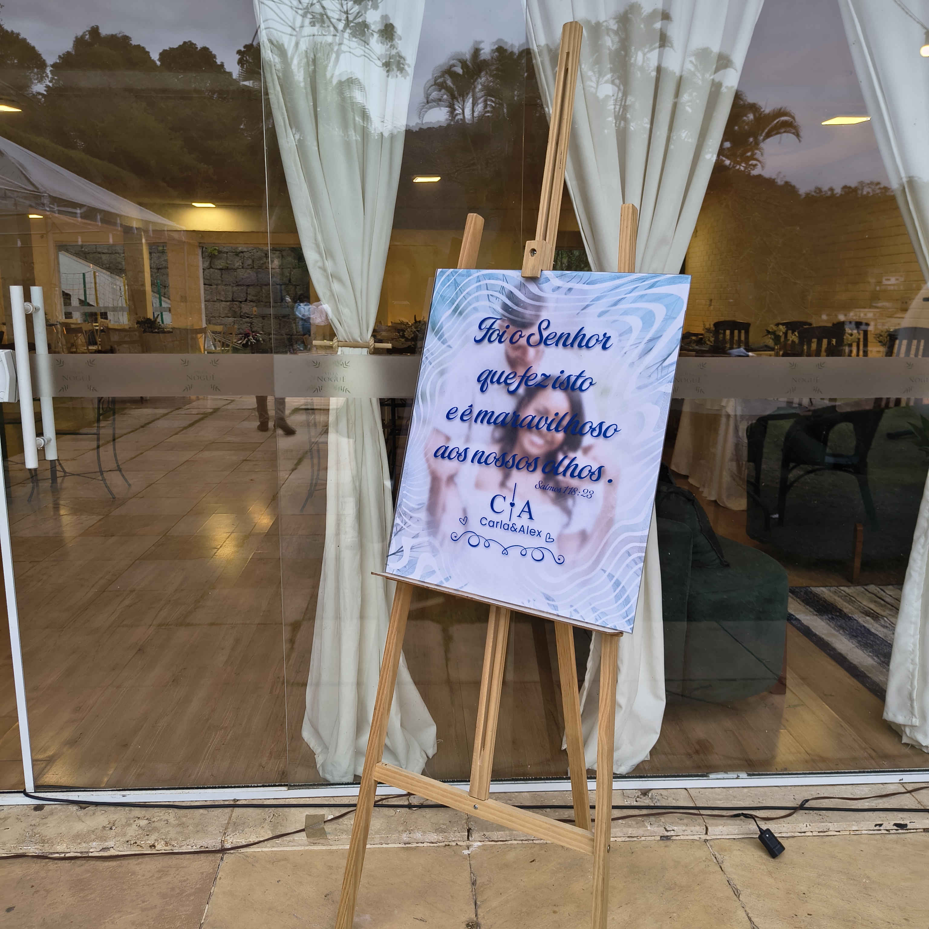 Tudo foi pensado para refletir exatamente o que a noiva sonhou — e quando isso acontece, o resultado é sempre autêntico. Não havia exageros, apenas harmonia. Uma decoração que respeitou o espaço, valorizou a natureza ao redor e contou a história de Carla e Alex sem precisar de palavras.